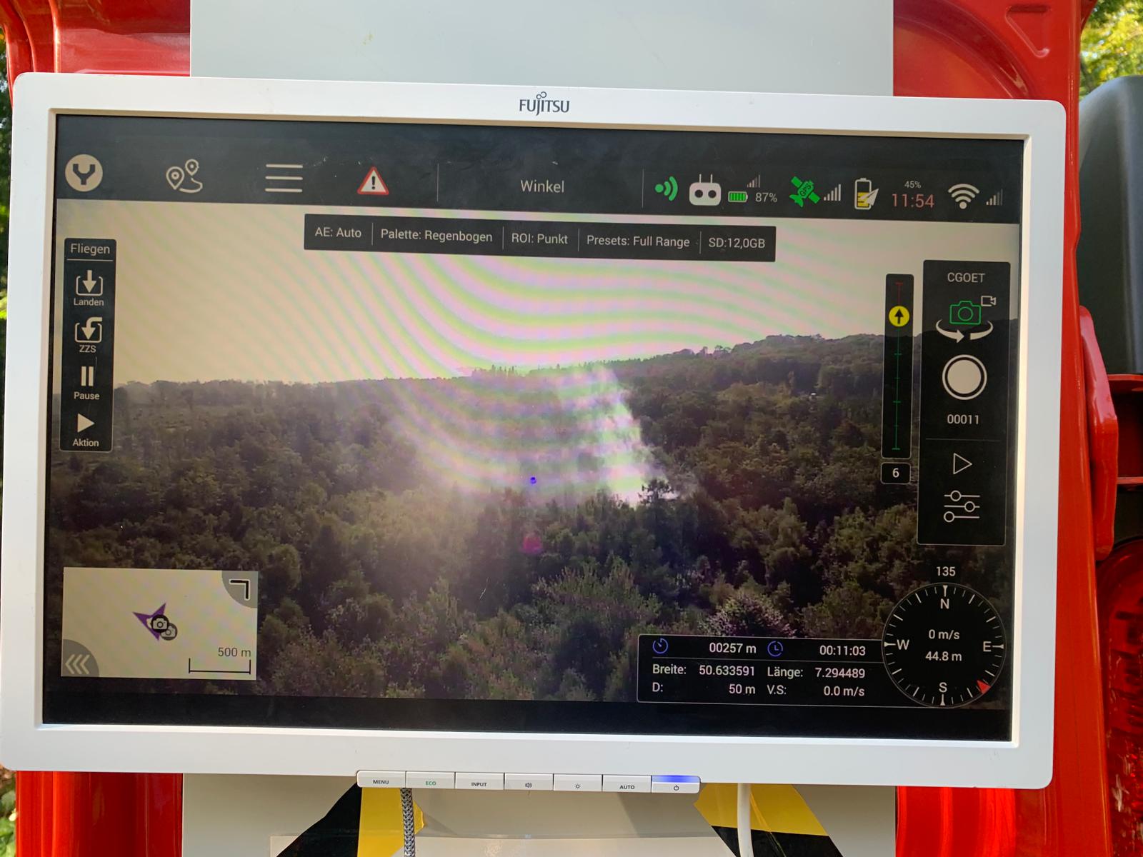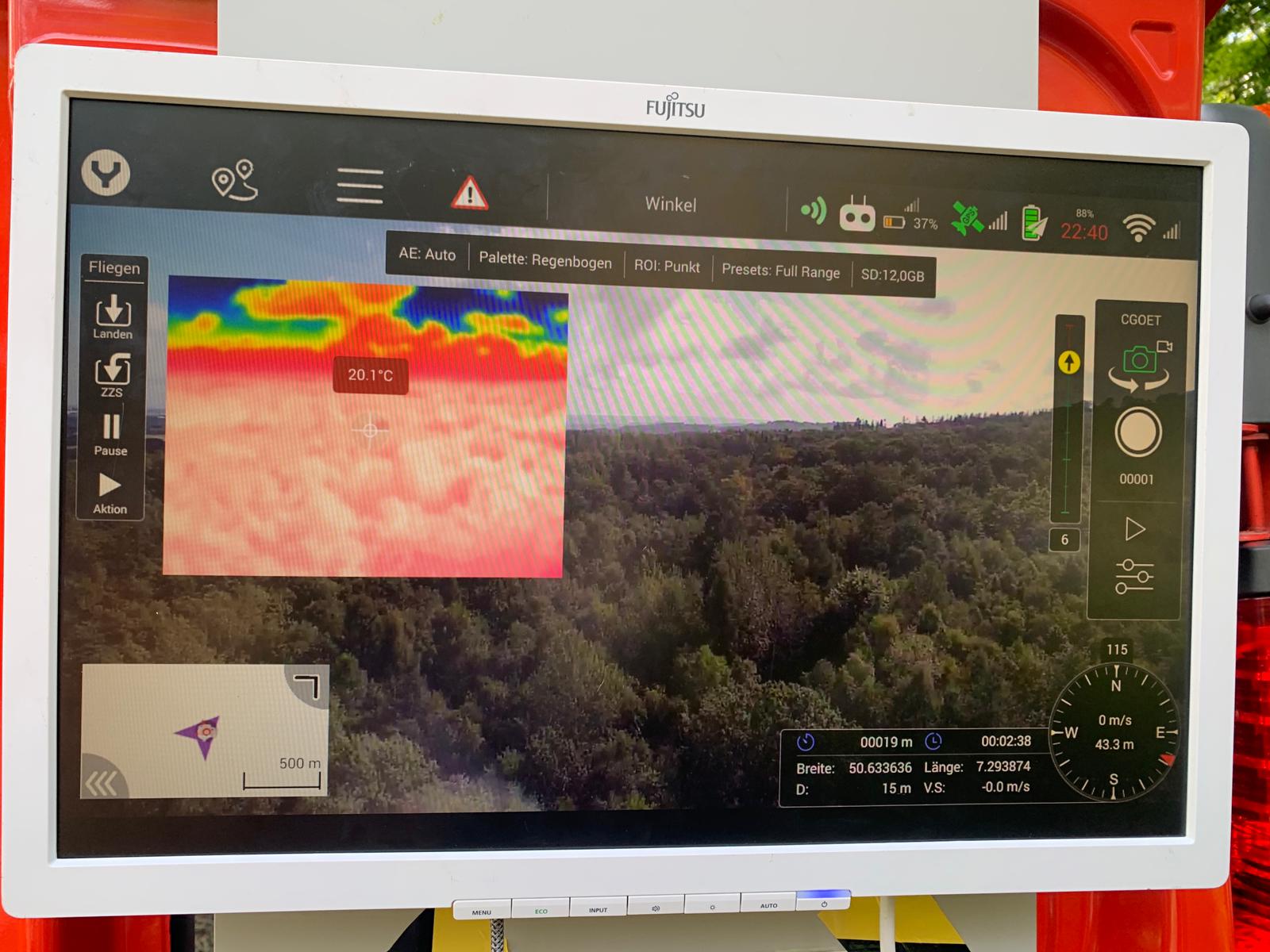 Inzwischen praktisch unverzichtbar für eine schnelle Erkundung und eine laufende Lagebeurteilung bei großen Vegetationsbränden sind Bilder aus der Luft. Mit ihnen können Brandherde lokalisiert und Brandverläufe erkannt werden. Aus diesem Grund nahmen an der Übung verschiedene Drohneneinheiten teil. Insgesamt vier fliegende Aufklärer konnten in Betrieb gehen. Dazu wurden die Drohneneinheiten der Feuerwehren Bonn, Königswinter und Linz, sowie die Einheit des THW OV Bad Honnef hinzugeholt. Gemeinsam konnten durch die Drohnen umfassende Lagedarstellungen und Lagebeurteilungen umgesetzt werden.